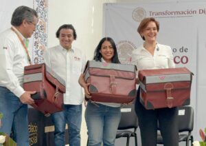 Como en la Ciudad de Mexico, también en Quintana Roo se entregaron hoy alforjas a carteras y carteros, con lo que se avanza en el plan de equipamiento al personal de Correos de México en todo el país.