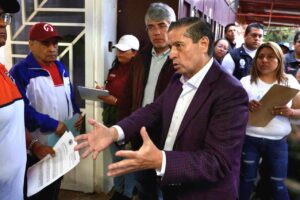 Los funcionarios, después de la ceremonia, bajaron del templete y visitaron algunas de las viviendas ubicadas en la Unidad CTM IX, en el cruce de las calles Candelaria Pérez y Elvira Vargas en donde conversaron con las y los vecinos quienes plantearon necesidades y atención en temas concretos como poda, luminarias, clareo, seguridad, bacheo, entre otras cosas.
