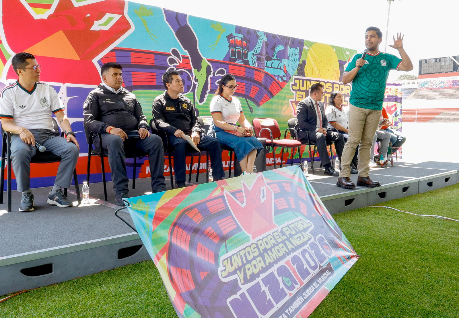 Adolfo Cerqueda Rebollo, Presidente Municipal de Nezahualcóyotl, en conferencia de prensa en el Estadio Neza 86, anunció que en el marco de la próxima Copa Mundial de la FIFA 2026, pondrá en marcha la iniciativa “Juntos por el fútbol y por amor a Neza”, que contempla actividades deportivas, culturales, gastronómicas y de convivencia social para fortalecer el tejido social y promover espacios públicos.