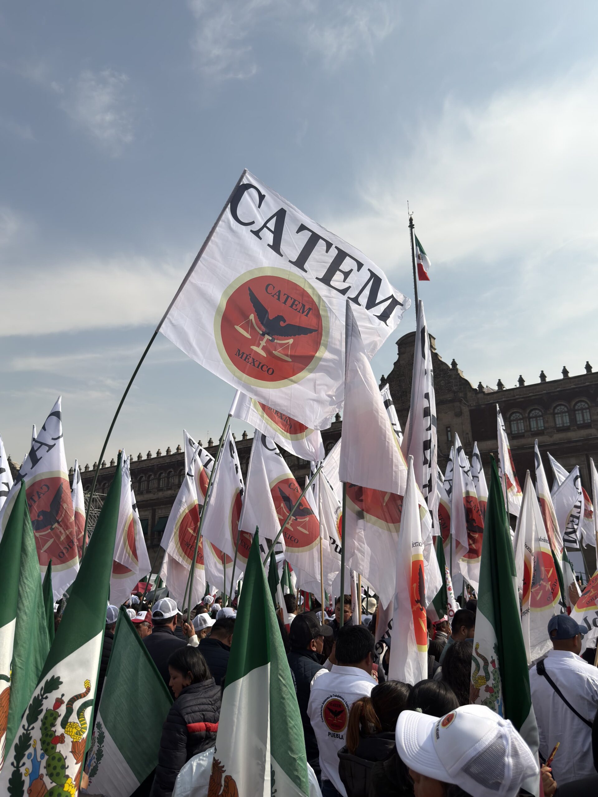 La Confederación Autónoma de Trabajadores y Empleados de México (CATEM) participó en la marcha y concentración convocada por la Presidenta de la República, Claudia Sheinbaum Pardo, con motivo del séptimo aniversario de la llegada de la 4T al Gobierno de México, con Andrés Manuel López Obrado, y su primer año.