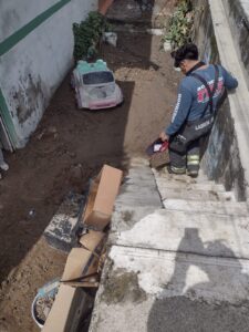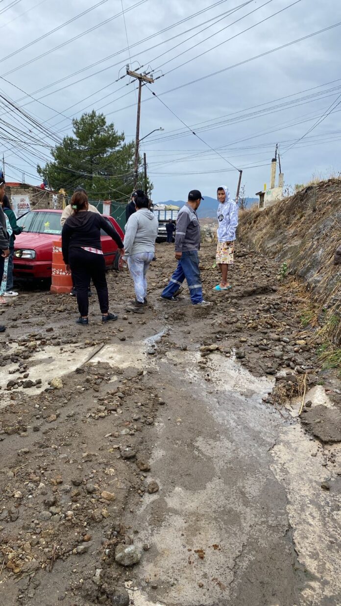 En este lugar, al que llegaron elementos de Protección Civil, a fin de preservar la seguridad de las y los vecinos de esta comunidad, aparentemente la tierra y el lodo descendía de la calle de la parte alta.