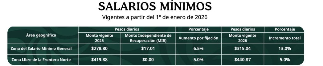 El aumento al salario mínimo general es histórico. En 2026, por primera vez en décadas es suficiente para superar el umbral de pobreza, pues tendrá un monto suficiente para 2 canastas básicas (CB).