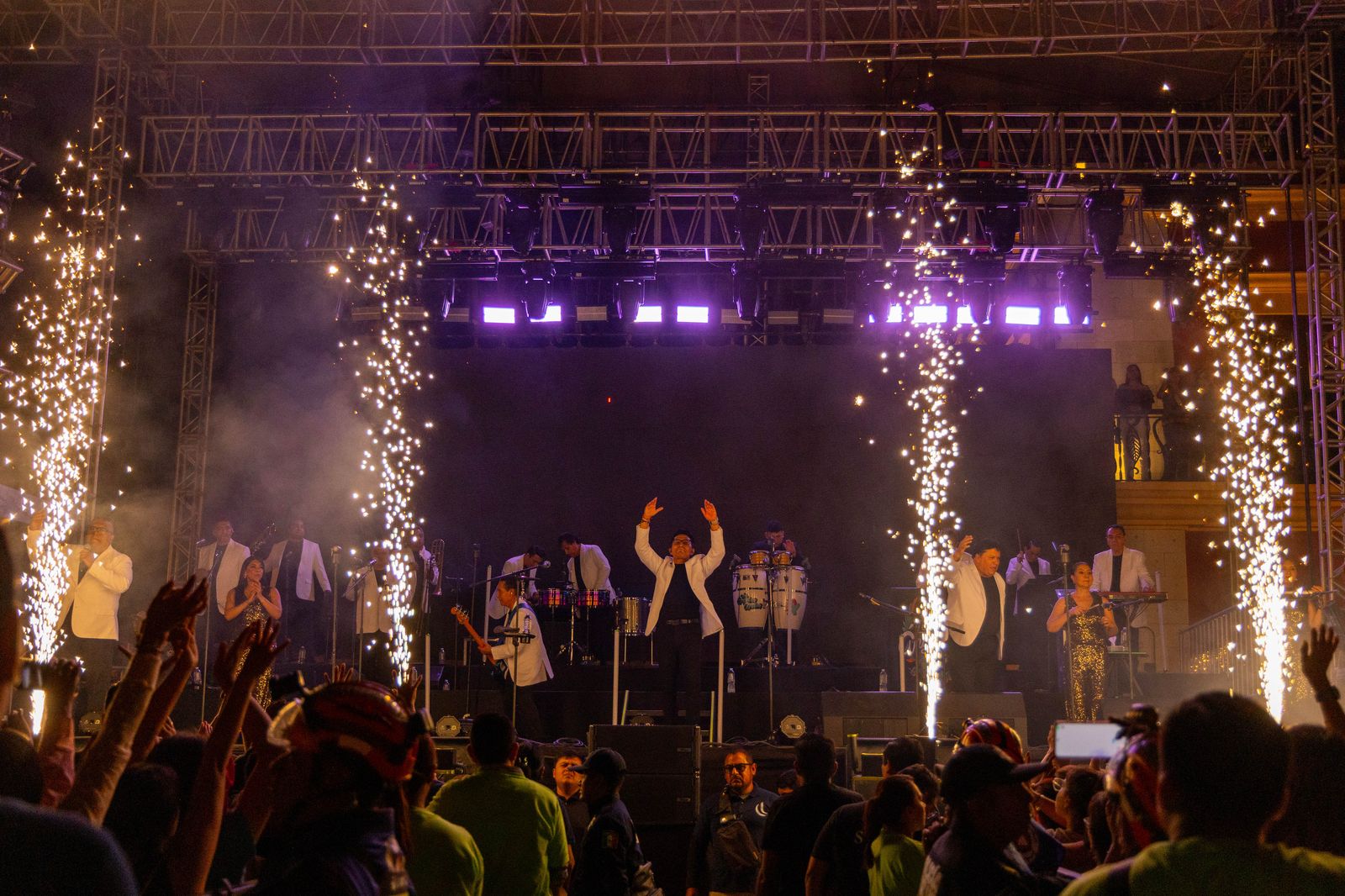 Con una escenografía vibrante, música en vivo y pantallas que acompañaron cada canción, los 15 integrantes del grupo -liderados por “El Doc” Mejía- brindaron un espectáculo lleno de energía, con coreografías sincronizadas y el inconfundible sabor guapachoso que los caracteriza.
