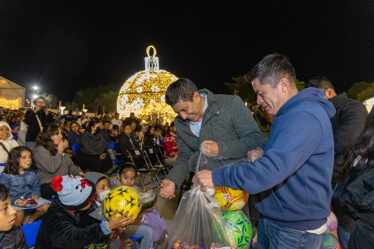 Con la tradicional posada, la niñez y adolescencia junto a sus seres queridos vivieron la magia de las fiestas decembrinas al coincidir en el tradicional recorrido con los faroles que iluminaron los pasillos que conducían al evento oficial donde se compartieron los villancicos Rodolfo El Reno y Feliz Navidad, este segundo interpretado en zapoteco de la Sierra Sur.