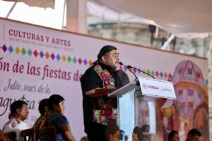 “Hoy más que nunca, debemos entender la Guelaguetza no como una simple festividad, sino como un acto sagrado de reciprocidad. Un llamado a vivir los valores que nos han sostenido como pueblos originarios: la comunalidad, el respeto a la madre tierra, el trabajo compartido y la memoria viva”, dijo.