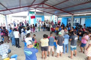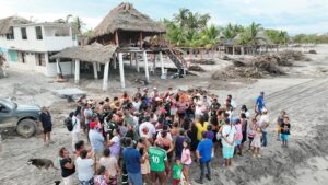 Con la presencia del presidente municipal Eder Muñoz Peña, las funcionarias visitaron la comunidad de Cerro Hermoso, donde escucharon las necesidades más urgentes de las y los habitantes. Durante la jornada, se entregaron víveres a las familias afectadas y se acordó realizar un censo de las palapas dañadas, con el objetivo de brindar atención directa a las y los prestadores de servicios turísticos.