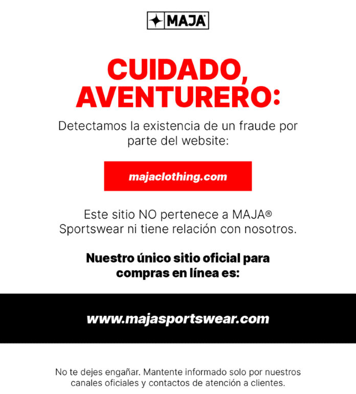 En un contexto donde los fraudes digitales se han convertido en una amenaza creciente para consumidores y empresas por igual, MAJA Sportswear, marca mexicana especializada en ropa tipo outdoor, informa sobre un intento reciente de suplantación de identidad mediante un sitio web falso que imitaba su imagen, estructura y contenido oficial.