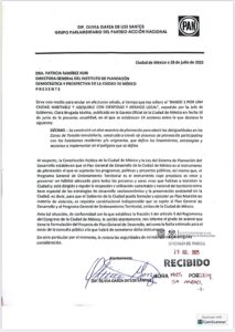 Mediante un oficio, la legisladora panista también solicitó al organismo público la fecha estimada para el inicio de la consulta pública a la que habrá de someterse dicho instrumento.