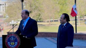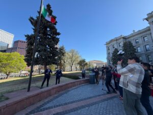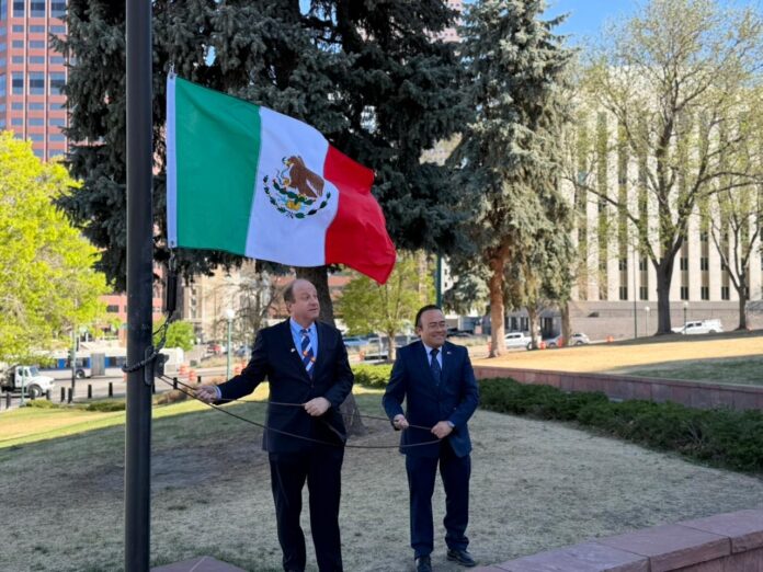 Denver, Colorado. 23 de abril de 2026.- En un acto protocolario convocado por el Sr. Jared Schutz Polis, Gobernador del Estado de Colorado, y el Embajador Pável Meléndez Cruz, Cónsul General de México en Denver, encabezaron el izamiento de la bandera de México en el Capitolio Estatal con motivo del Día de la Amistad México-Colorado.