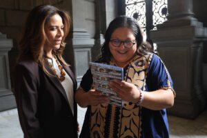 Además, la secretaria recordó que los billetes de Lotería Nacional ahora cuentan con un código QR que enlaza a la Cartilla de Derechos de las Mujeres, gracias a la colaboración entre ambas instituciones ahora los cachitos son un medio de la difusión de este instrumento que busca informar a todas y todos.