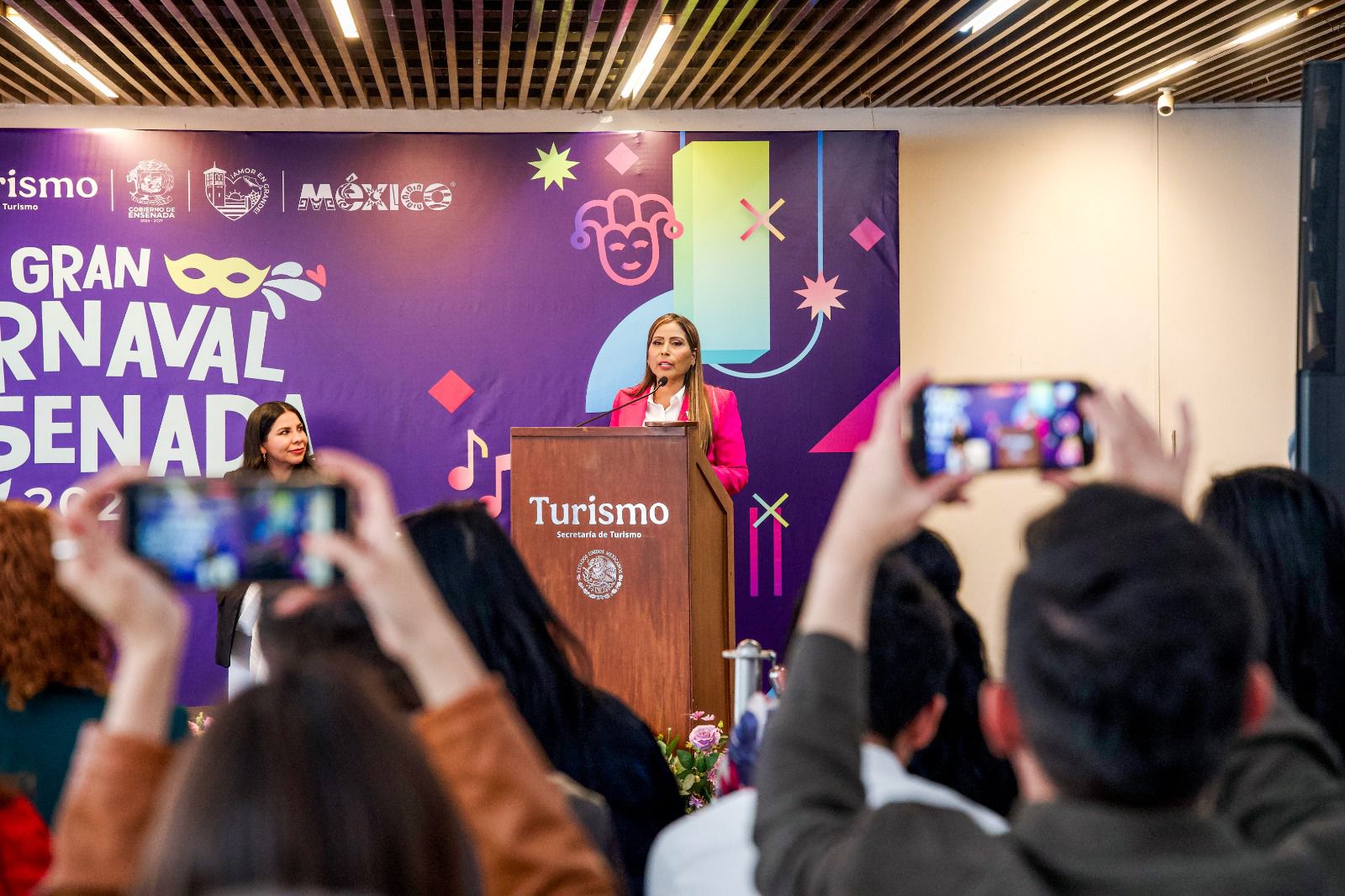 Durante una rueda de prensa realizada en las instalaciones de la Secretaría de Turismo en la Ciudad de México, la alcaldesa destacó que el Carnaval de Ensenada representa una de las celebraciones populares más importantes y con mayor tradición del noroeste del país, que este año espera reunir a más de 400 mil asistentes entre visitantes locales, nacionales e internacionales.