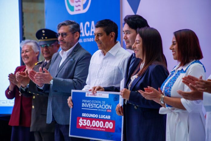 Oaxaca de Juárez, Oax. 23 de octubre de 2025.- El Gobernador Salomón Jara Cruz entregó el Premio Estatal de Investigación en Salud 2025, máximo galardón que distingue el talento, innovación y compromiso de las y los profesionales de este sector; quienes aportan avances sustantivos a la ciencia médica, que genera beneficios concretos para la población oaxaqueña.