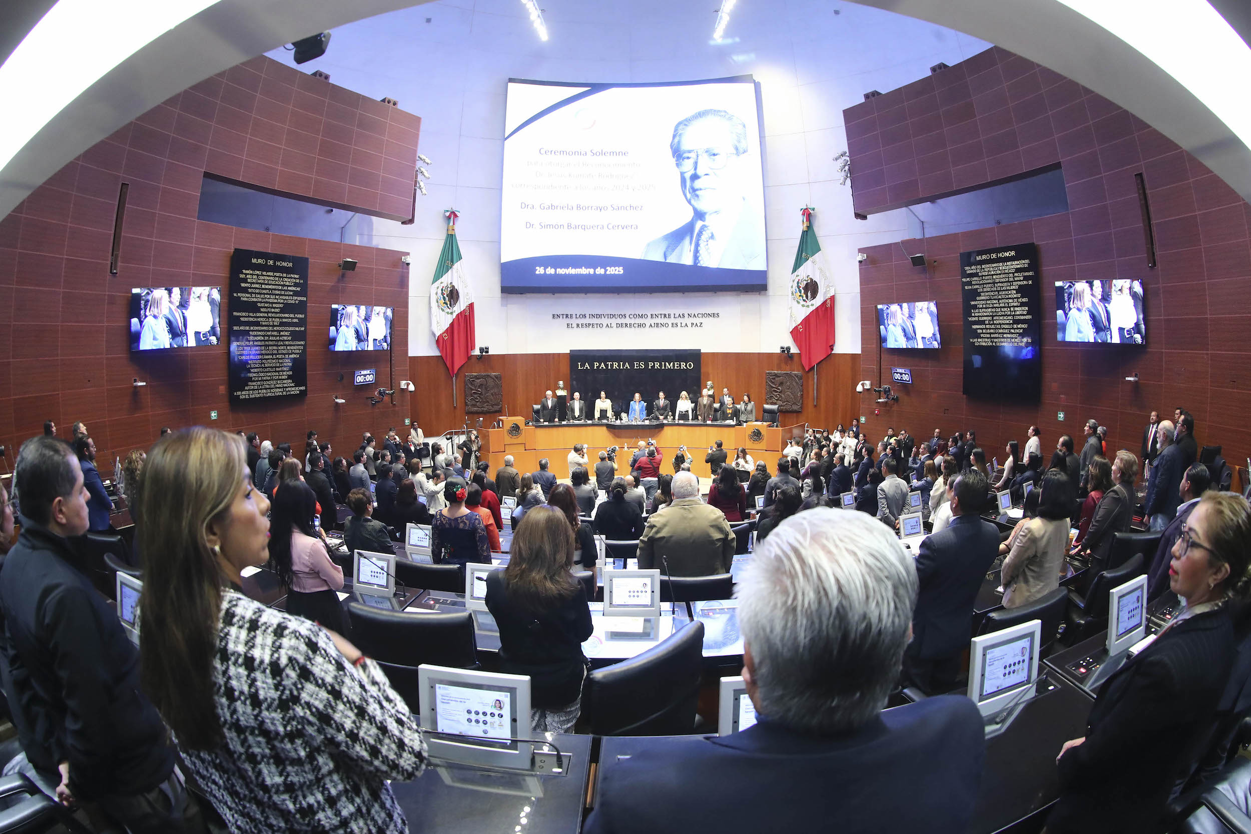 En Ceremonia Solemne, la Cámara de Senadores entregó los Reconocimientos “Dr. Jesús Kumate Rodríguez”, correspondientes a 2024 y 2025, a la doctora Gabriela Borrayo Sánchez y al doctor Simón Barquera Cervera, por su trabajo y servicio a la salud del pueblo mexicano.