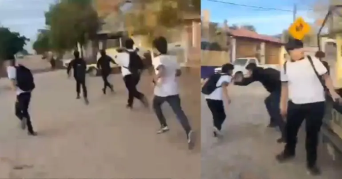 El video que circuló en redes sociales muestra a jóvenes de preparatoria corriendo con sus mochilas mientras de fondo se escuchan detonaciones de arma de fuego.