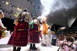 • En la edición vespertina y última del año, las delegaciones de las ocho regiones de la entidad hicieron vibrar los corazones de las y los más de 11 mil asistentes, quienes ovacionaron la riqueza pluricultural de los 16 pueblos originarios y afromexicano de Oaxaca