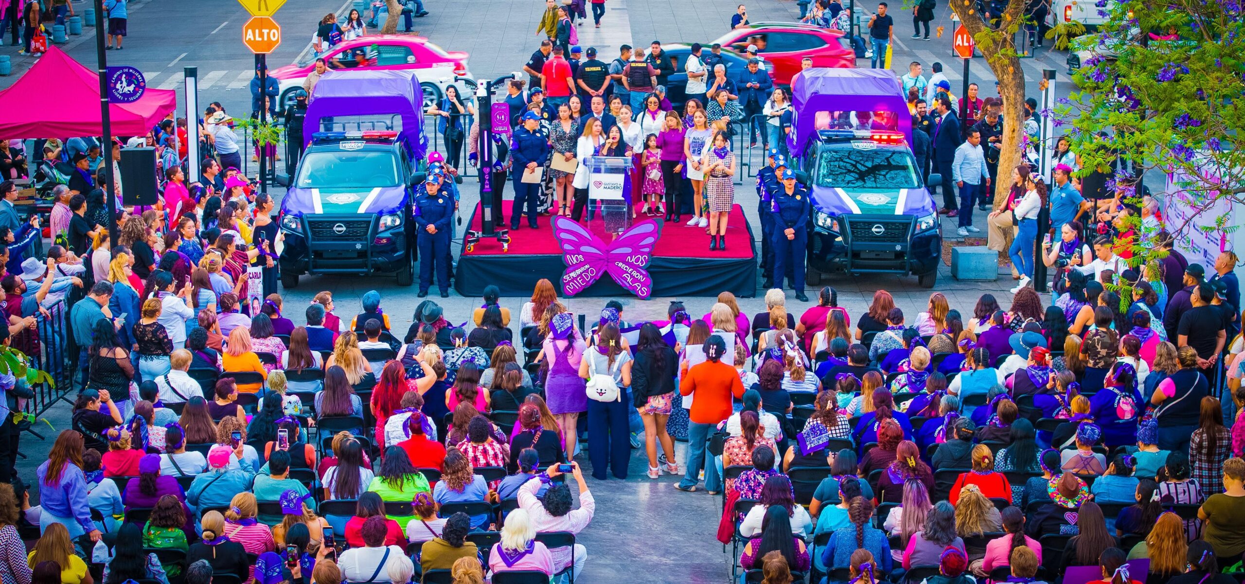 Además, el alcalde Janecarlo Lozano presentó el “Poste Tótem Violeta”, es un poste de siete metros de altura con cuatro cámaras de vigilancia y botón de pánico que atenderá a las mujeres en peligro, dicho poste estará conectado al Centro de Inteligencia “Fuerza GAM” que se construye en la sede de la alcaldía.