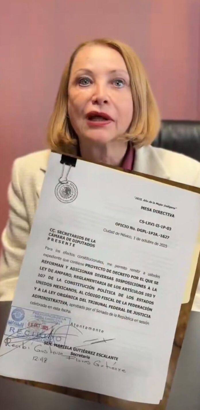 “En el Senado mexicano quedamos atentos al análisis y discusión de esta modificación que busca agilizar el derecho de amparo, así como garantizar los derechos de las y los mexicanos”, escribió la legisladora en redes sociales.