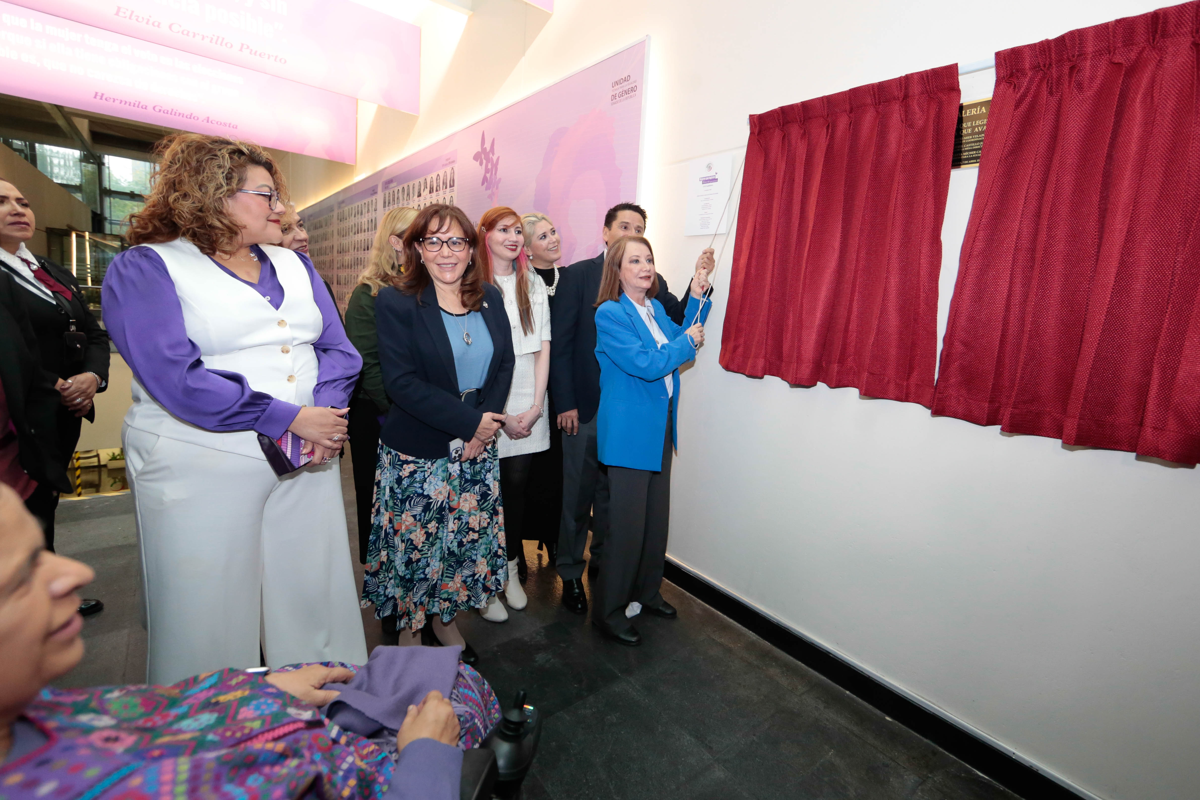 En la inauguración, la presidenta del Senado de la República, Laura Itzel Castillo Juárez, señaló que esta galería representa la lucha de muchos años que se ha dado por parte de las mujeres en este país.