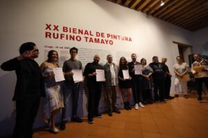 Oaxaca de Juárez, Oaxam. 23 de agosto de 2025.- La vigésima edición de la Bienal de Pintura Rufino Tamayo llegó a la entidad para presentarse en el Museo de Arte Contemporáneo y de las Culturas Oaxaqueñas (MACCO) con 40 obras seleccionadas mediante una convocatoria abierta a nivel nacional.