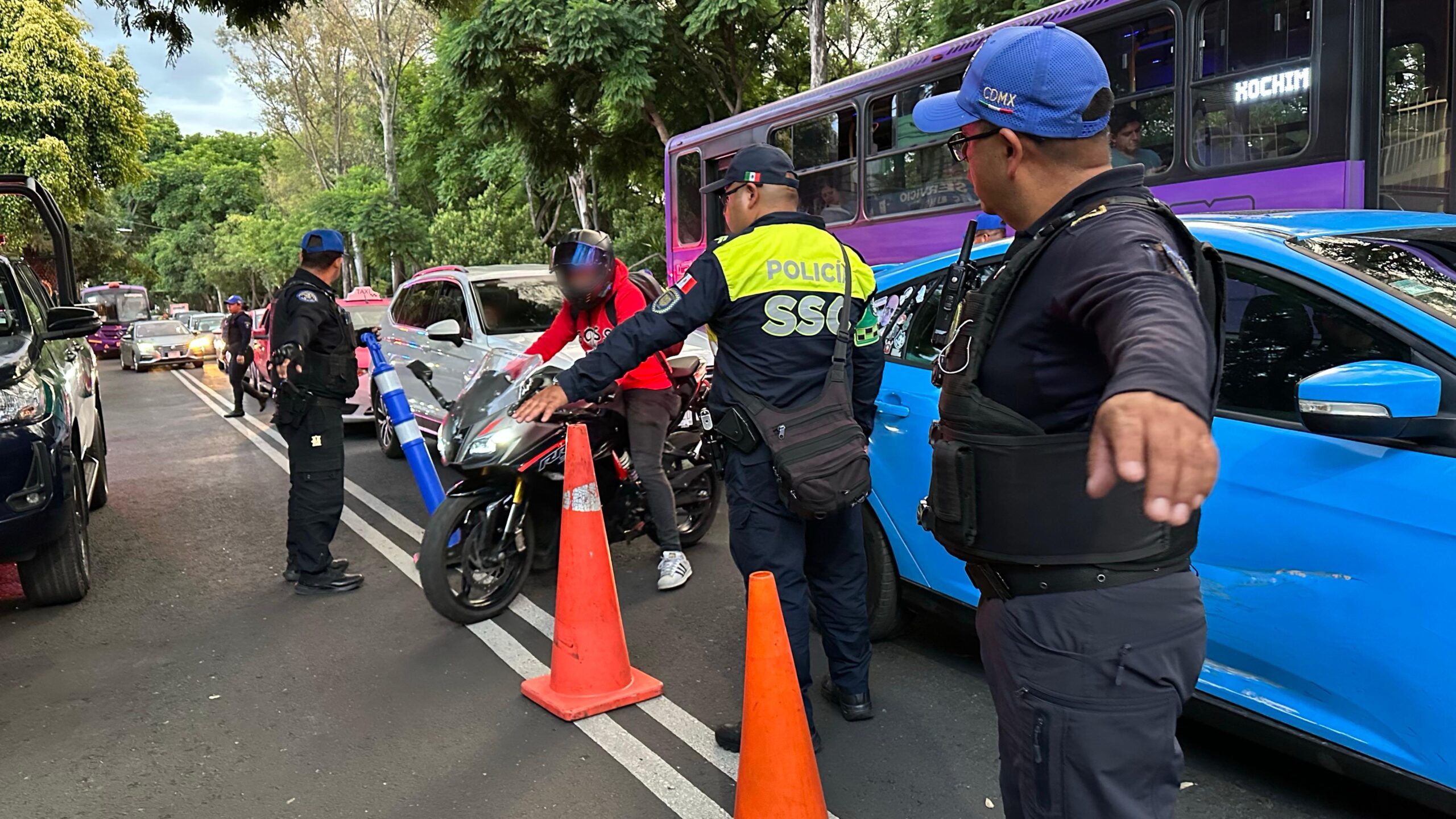 Con el objetivo de inhibir posibles actos constitutivos de delitos o infracciones de tránsito, la alcaldía Coyoacán, en coordinación con la Secretaría de Seguridad Ciudadana (SSC), la Secretaría de Marina (SEMAR) y la Guardia Nacional (GN), han puesto en práctica dispositivos de seguridad para revisión de motocicletas en distintos puntos de la demarcación.