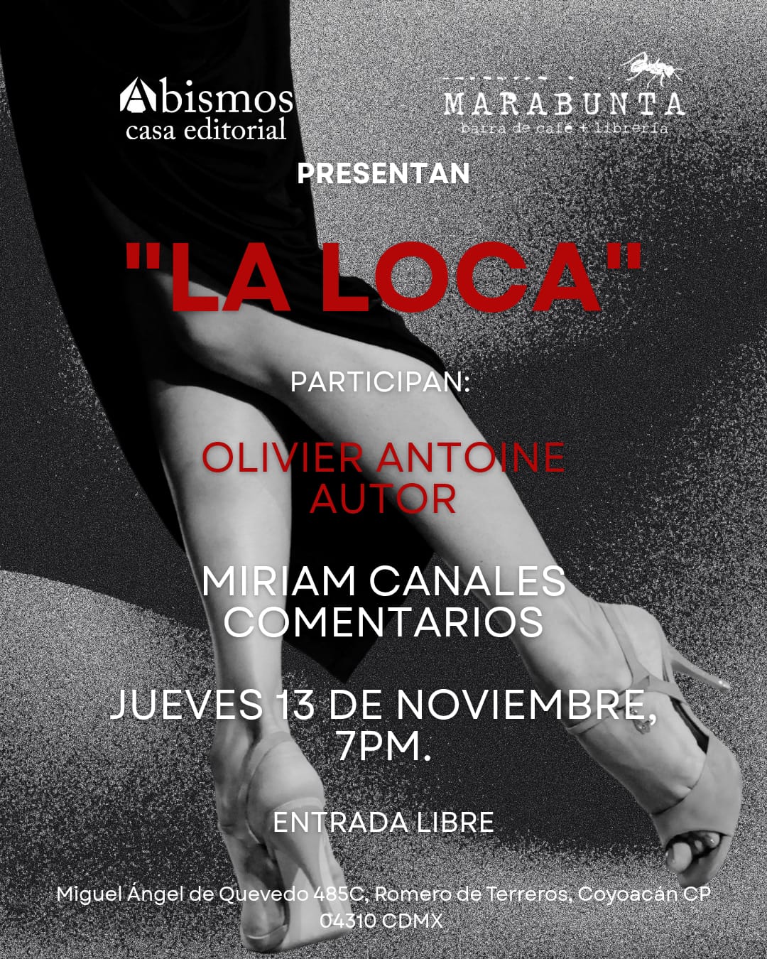 Presentación: jueves 13 de noviembre, 2025, 19:00pm en MARABUNTA CAFÉ Y LIBRERÍA (Miguel Ángel de Quevedo, 485c).