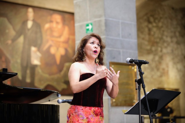 La segunda parte del recital fue dedicada a la primera cantante con carrera internacional y conocida como el “ruiseñor mexicano”, Ángela Peralta, a través de las piezas “Loin de toi”, seguida por “Vuelta a la patria” en un solo de piano, así como “Io te amero” y “El Deseo”.