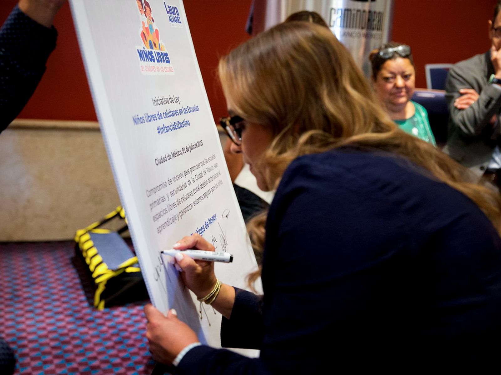 La diputada Laura Álvarez inició esta semana la campaña “Niños libres de celulares en escuelas”, para recolectar firmas de padres de familia, maestros y sociedad en general que estén de acuerdo con esta iniciativa en primarias y secundarias.