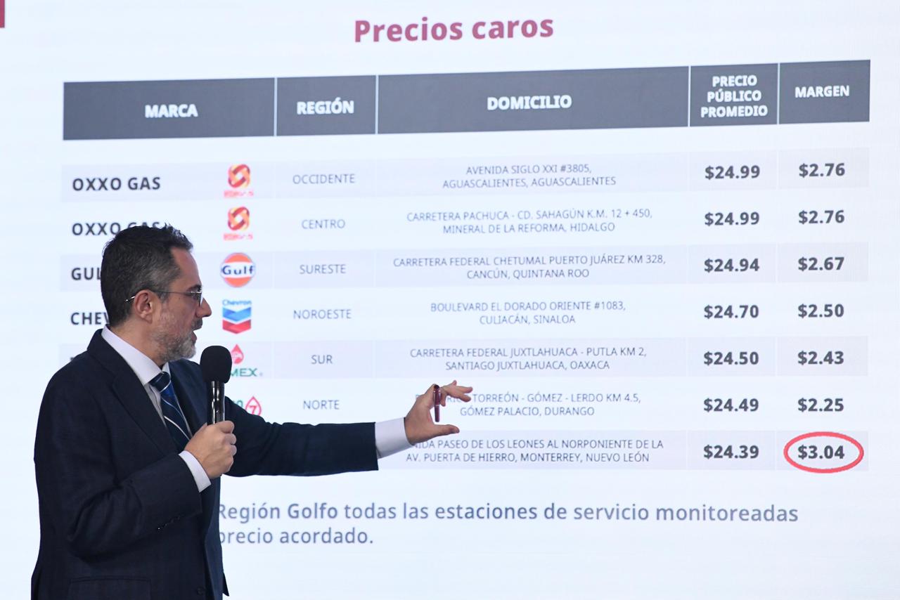 A través de un monitoreo realizado del 7 al 13 de abril, mediante la herramienta «Quién es Quién en los Combustibles», se reportó que el precio más bajo lo tuvo Energéticos de Boca, de grupo Pemex, en Veracruz, Veracruz, en $23.19 pesos por litro. El precio más caro fue de $24.99 pesos, en Servicios Gasolineros de México, de Oxxo Gas, en Aguascalientes, Aguascalientes.