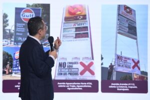 Para orientar a las y los consumidores, el titular de la Procuraduría agregó que tras realizar 44 visitas a gasolineras, del 13 de abril a la fecha se han colocado 14 lonas con la leyenda “No cargues aquí, se vuelan la barda con los precios” en estaciones de servicio con precios altos.