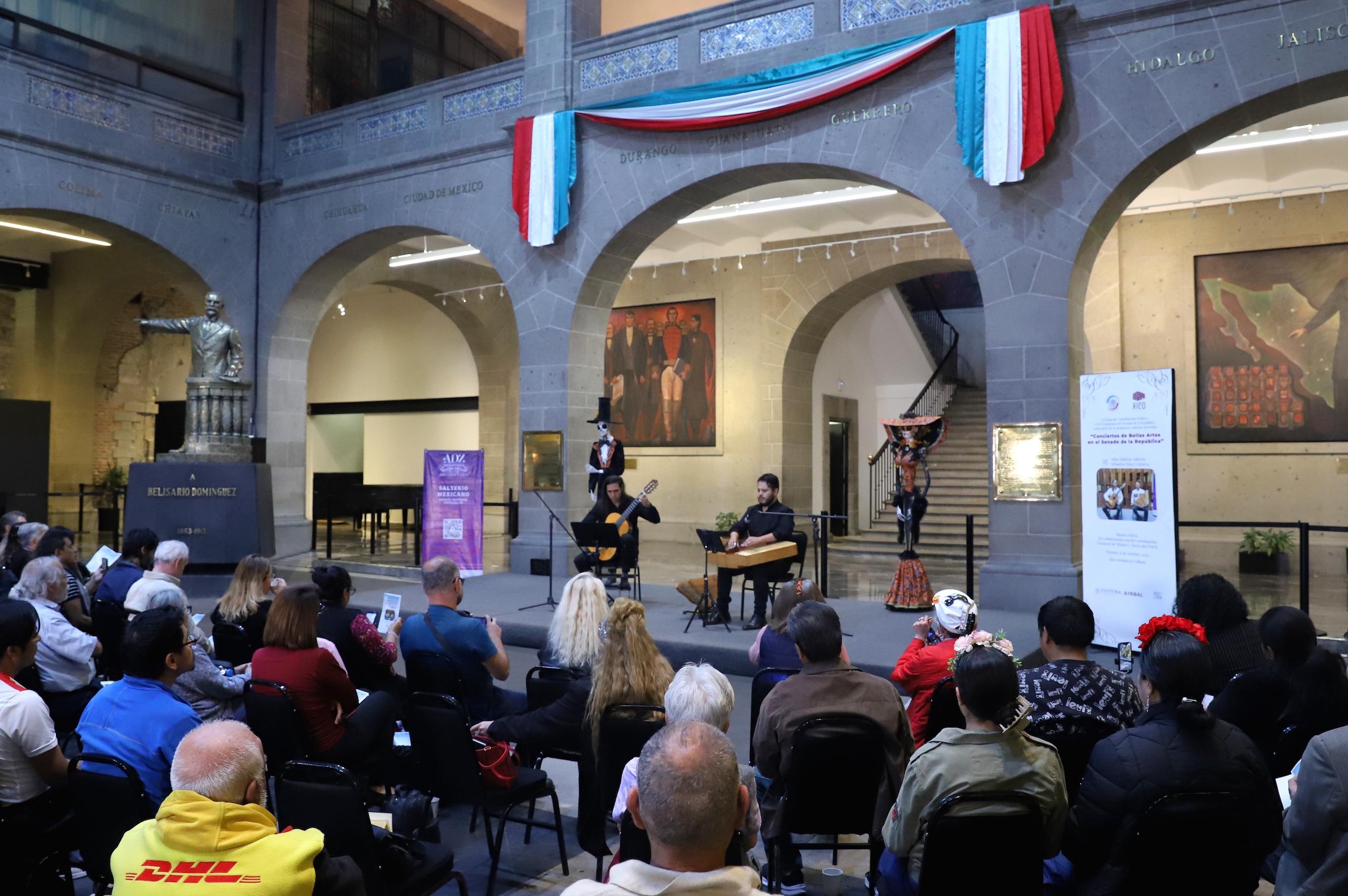 En el patio central del recinto, los músicos interpretaron este viernes canciones mexicanas emblemáticas como “La bikina”, “La llorona”, entre otras, las cuales emocionaron a la cada vez más numerosa asistencia.