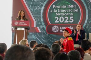 En las instalaciones del IMPI, la directora general de Lotería Nacional, Olivia Salomón, recordó que la Presidenta, Claudia Sheinbaum Pardo, con visión y formación científica, entiende que la precisión de la ciencia y la sensibilidad de lo público son necesarias para lograr el desarrollo tecnológico y mayor competitividad de México, muestra de ello es la creación de la primera Secretaría de Ciencia, Humanidades, Tecnología e Innovación, encargada de articular este potencial en el país, así como brindar soluciones reales a los grandes desafíos. «México no sólo consume innovación: la crea, la patenta y la comparte con el mundo», expuso.