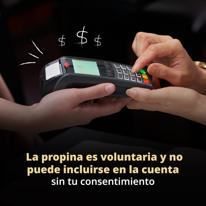 - Recuerda que la propina es voluntaria y no puede incluirse en la cuenta sin el consentimiento de las personas