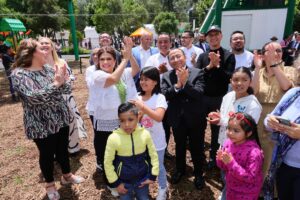 La Jefa de Gobierno de la Ciudad de México, Clara Brugada Molina, encabezó la inauguración del primer Espacio de Desarrollo y Esperanza para la Niñez (EDEN) en el Parque del Mestizaje, que inspirado en las Utopía cuenta con tirolesas, pista BMX, carrusel, trenecito, arenero, velaria cultural, fuentes y esculturas restauradas, así como parque canino, entre otros servicios.
