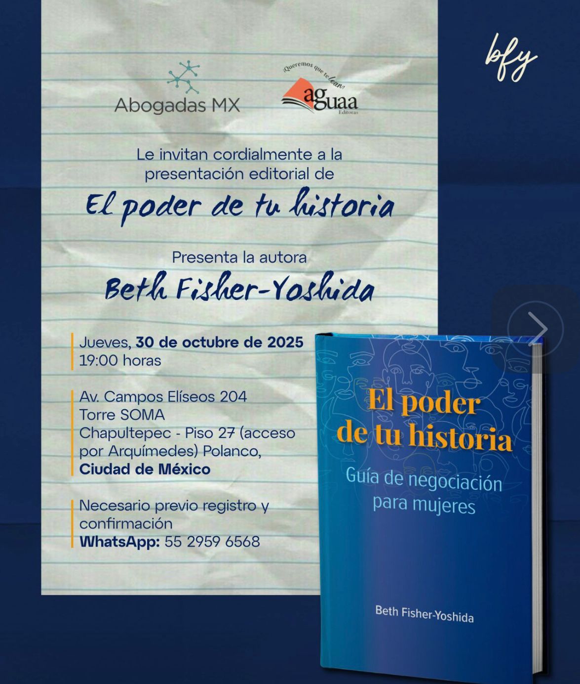 Ciudad de México, octubre de 2025. ¿Y si el verdadero campo de batalla en la negociación no fuera la mesa, sino la mente? Con esa premisa llega a México El poder de tu historia. Guía de negociación para mujeres, de la Dra. Beth Fisher-Yoshida, profesora de la Universidad de Columbia y una de las voces más influyentes en liderazgo y resolución de conflictos a nivel global.