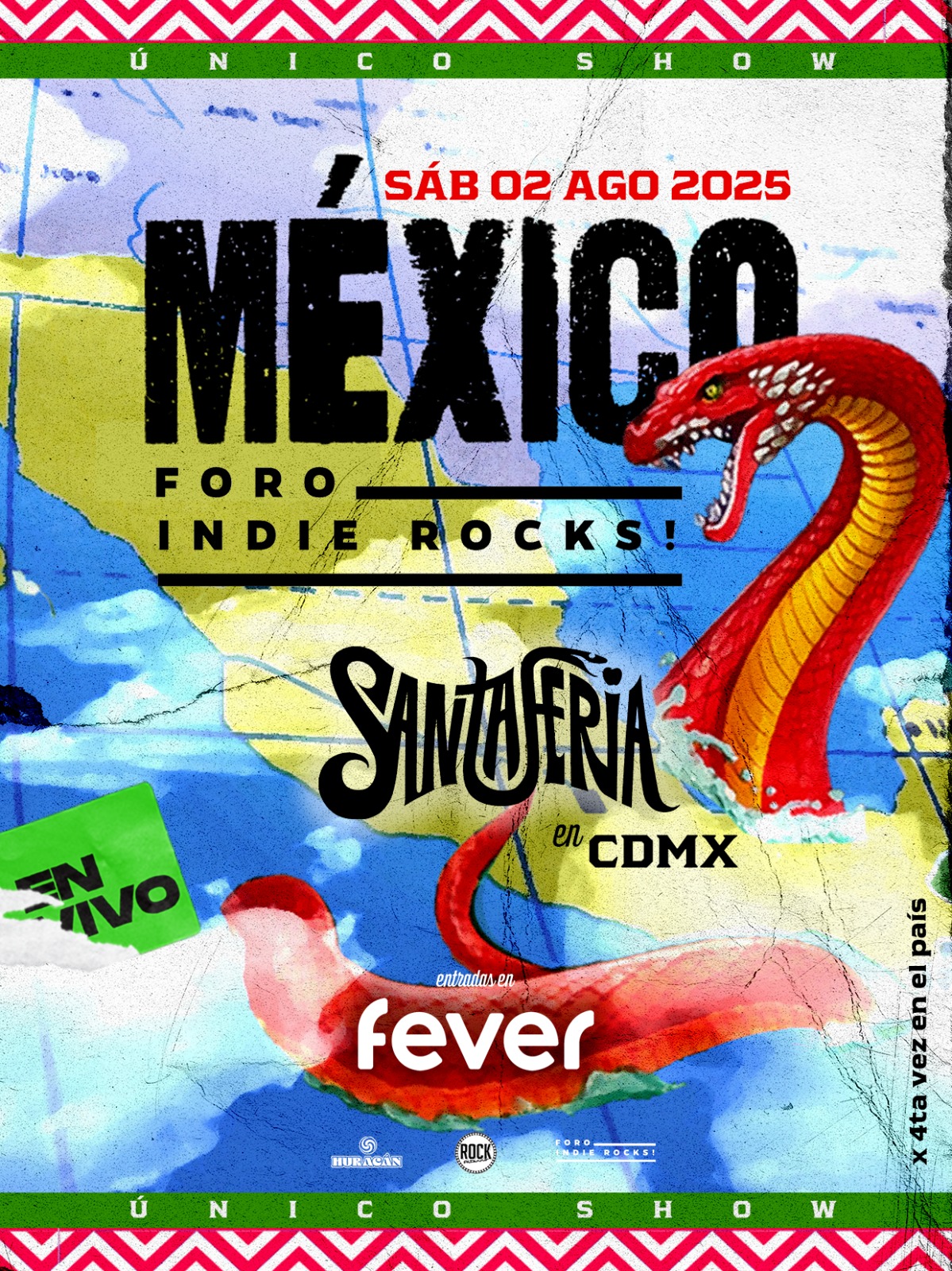 Los boletos para este evento único están disponibles en Fever Up. No pierdas la oportunidad de ser parte de esta celebración musical que promete ser un hito en la historia del Foro Indie Rocks! el próximo Sábado 02 de Agosto.
