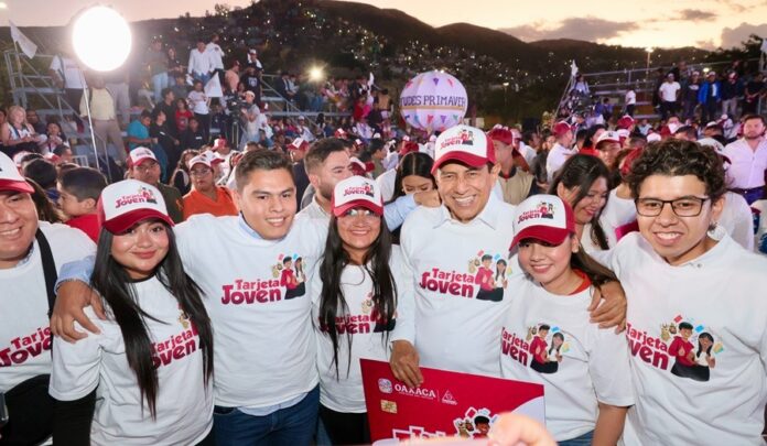 El Gobernador Salomón Jara Cruz dio inicio oficial al programa de Tarjeta Joven 2025, con una inversión de 100 millones de pesos que beneficiará a 13 mil 193 juventudes oaxaqueñas de 18 a 20 años, para que accedan y participen en prácticas culturales, artísticas, deportivas y de sano esparcimiento; sin costo o con descuento.